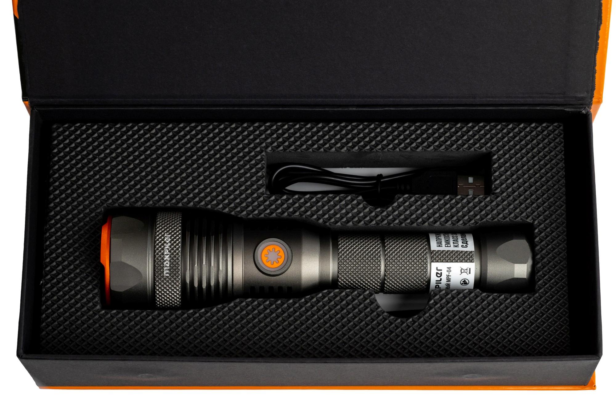 Фонарь, провод зарядки Type-C, руководство по эксплуатации, коробка