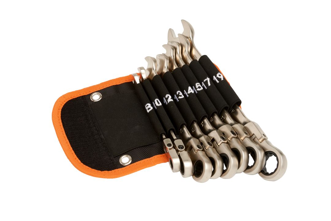 Набор комбинированных ключей с трещоткой в сумке MXT-8-SB включает в себя 8 предметов. Рабочие части из хромованадиевой стали надежны, прочны и устойчивы к коррозии. Сумка «оксфорд» для хранения и транспортировки.