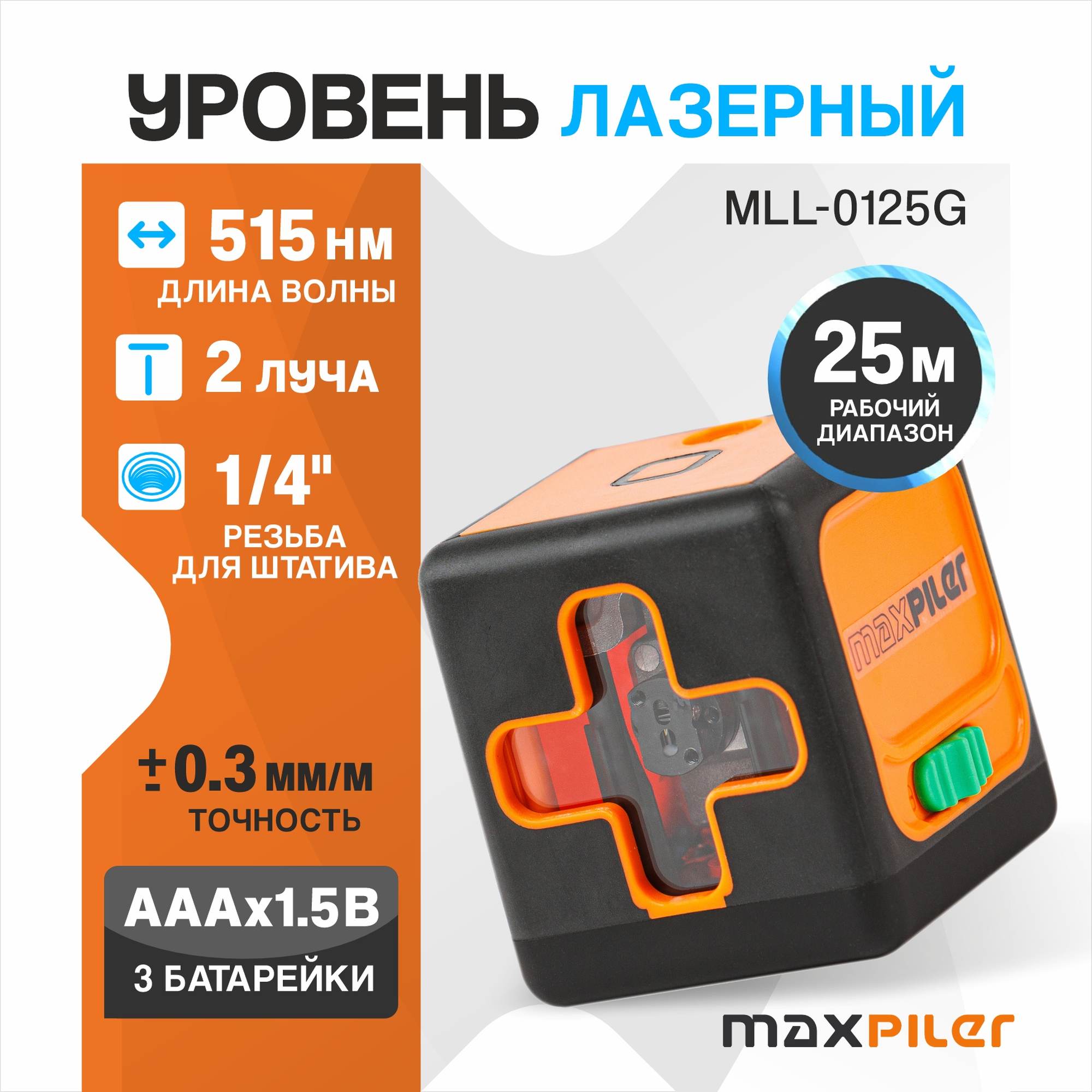 Лазерный уровень (построитель плоскостей) MLL-0125G предназначен для построения горизонтальных и вертикальных проекций.